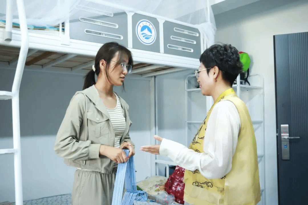 在每间精心准备的宿舍里,我们为同学们配备了空调、行李架、衣柜等,保障了大家生活的便利与舒适。每层楼还贴心配备了公共洗衣机、吹风机和饮水机。付国花亲切地问候新同学,关心了解新生在入学时遇到的困难和问题,耐心地向家长朋友和同学们解答。