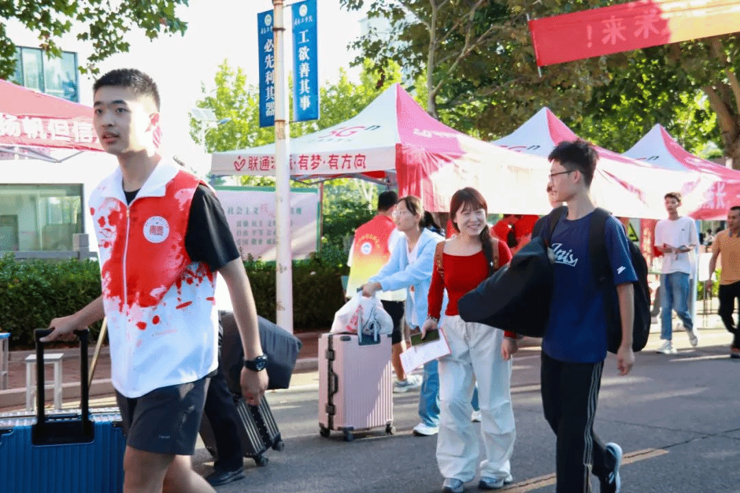 随着同学们陆续抵达,迎新现场热闹非凡。志愿者们热情地接过同学们手中的行李,引导他们办理入学手续。耐心细致地解答各种问题,确保每一位同学都顺利愉快地踏入青工校园。
