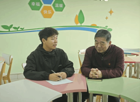 刘恩超教授与费济新同学亲切交流,围绕家乡情况、家庭背景、校园教学、饮食生活、大学体验及未来规划等方面展开对话。费济新同学介绍了家乡的风土人情,汇报了家庭情况与既往学生工作经历,对领导老师的关怀表达诚挚感谢。刘恩超教授指出,“思路清晰是成事之基”,强调“三百六十行,行行出状元”,并以律师职业为例,勉励学生树立终身学习理念。他表示,学校为学生成长搭建了平台,真正的成长要靠自身的努力与修行,激励学生珍惜时光、明确方向、奋发有为。