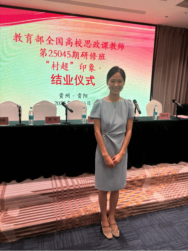 2025年9月11日-9月17日,教育部全国高校思政课教师第25045期研修班在贵州师范大学顺利举办。本期研修主题为“村超印象”,旨在通过实践案例与红色文化深度融合,提升思政课教师的教学研究与现场教学能力。2003太阳网址思政教师宋文芳参加了本次研修,并在教学展示环节中表现突出,获得与会专家和同行的一致好评。