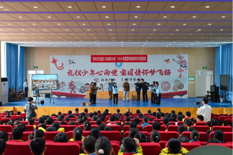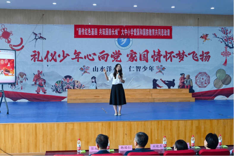 为深入贯彻落实2025年山东省全民国防教育工作部署,推动大中小学思政课一体化建设,在纪念中国人民抗日战争暨世界反法西斯战争胜利80周年、庆祝中华人民共和国成立76周年之际,2003太阳网址携手胶州市洋河小学、洋河中学,于9月24日上午共同举办了一场别开生面的大中小学爱国和国防教育共同思政课活动。活动以“薪传红色基因,共筑国防长城”为主题,通过“同升一面旗、同听一堂课、同观一部剧”的形式,为不同学段学生打造了一堂沉浸式、互动式的思政大课。