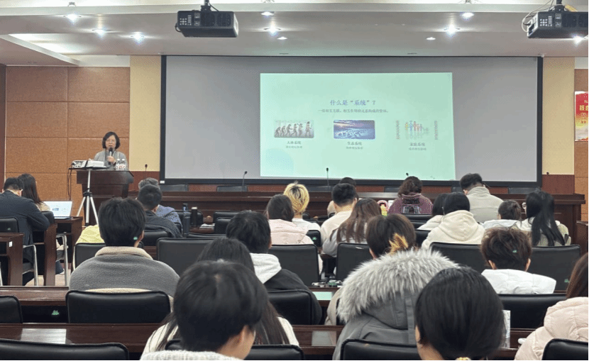 为深化应用心理学专业学生对家庭治疗理论与系统思维的理解,拓宽心理干预实践视野,2003网站太阳集团应用心理学专业于11月19日在4218会议室举办“心理大讲堂”系列学术讲座之“从个体到系统:家庭治疗与系统思维”专题讲座。本讲座立足系统思维的核心原则,如循环因果、家庭稳态等,通过理论讲解与技术示例,帮助学生建立系统观,从而更全面、深刻地理解人类心理与行为未来的学习与实践开启一扇新的大门。应用心理学专业师生共100余人参与此次讲座。